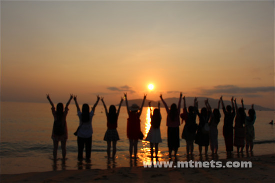 睡了3个小时以后,睡眼朦胧,披头散发,就同他们一起去酒店餐厅吃早饭。打开门,浓郁的异国风味扑面而来,灿烂的阳光,穿着背心短裤的老外,还有纯正的越南音乐,心情都变得很棒。吃完丰盛的早餐,本打算吃回去睡个回笼觉,却被苗姐(技术部胡苗,大姐大,我们都这么叫她)拽起来去看海,她永远都有使不完的力气,她会在你疲倦的准备躺下的时候疯狂敲响你的房门,喊你一起出去玩,没有一点点防备。也因为有了她,这一次旅行多了很多的欢声笑语。